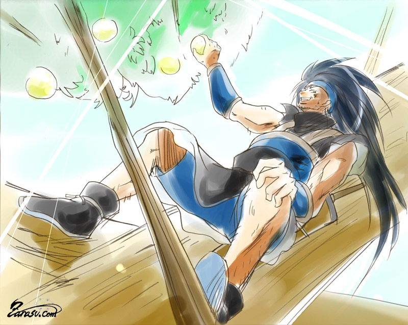梨をぶつけられた男──サド・ムラガは、旅装を解かぬままの態で、跪く。竜の戦士はからからと笑った。